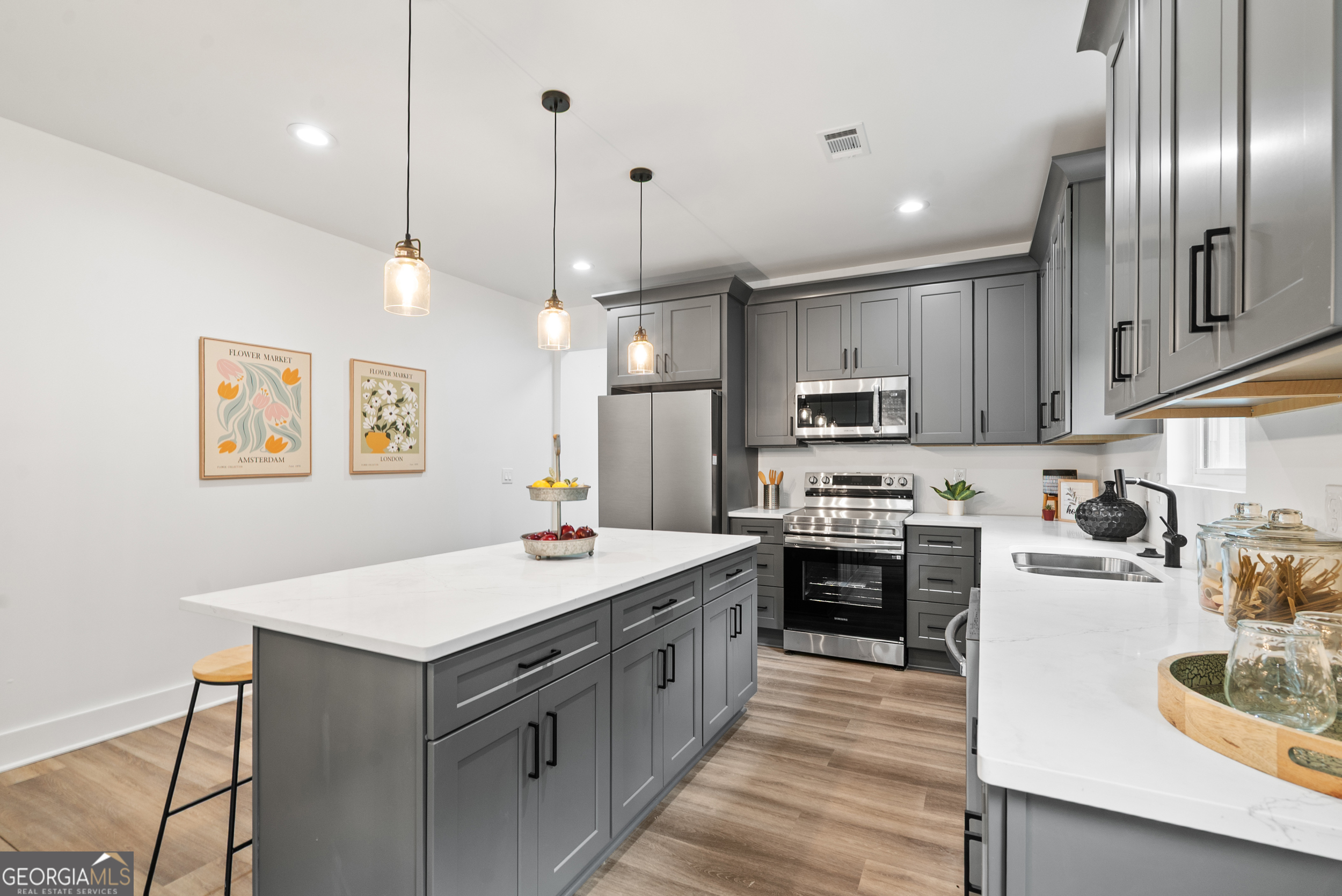 ***Seller offering $10,000.00 dollars in closing cost*** Welcome to 121 Orchard Street, a beautifully renovated home in the heart of Historic Downtown Fairburn, GA. This charming cottage offers a modern lifestyle with its thoughtfully updated features and spacious layout. Step into modern comfort and style with this beautifully renovated home with over 1,600 square feet of inviting living space, elegantly enhanced by luxury vinyl plank flooring throughout and open floor plan. The home boasts three generously sized bedrooms, offering comfort and privacy, complemented by two fully updated bathrooms featuring high-quality finishes. The heart of this home is the brand-new kitchen, designed to impress with its 42-inch cabinets, sleek quartz countertops, and state-of-the-art stainless steel appliances, perfect for culinary enthusiasts. The open concept seamlessly connects the kitchen to the living area and dining room area, ideal for entertaining guests. Retreat to the primary bedroom, a true sanctuary featuring a large en-suite bathroom with a huge walk-in shower and a spacious walk-in closet, ensuring ample storage and a luxurious feel. Set on a substantial lot, this property offers plenty of outdoor space for gardening, recreation, and relaxation. Enjoy serene mornings or unwind in the evenings on the charming country porch, adding to the home's inviting atmosphere. Additional updates include new windows and a new roof, enhancing energy efficiency and providing peace of mind. Experience the perfect blend of modern upgrades and classic comfort in this exceptional home. Don't miss the opportunity to make 121 Orchard Street your new address. Contact us for more information or to schedule a private tour.
